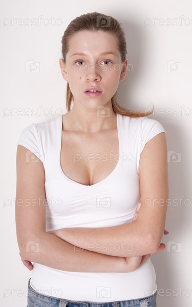 Портрет молодой красивой женщины на белом фоне