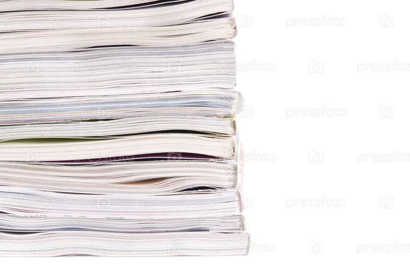 Крупным планом куча журналов на белом фоне