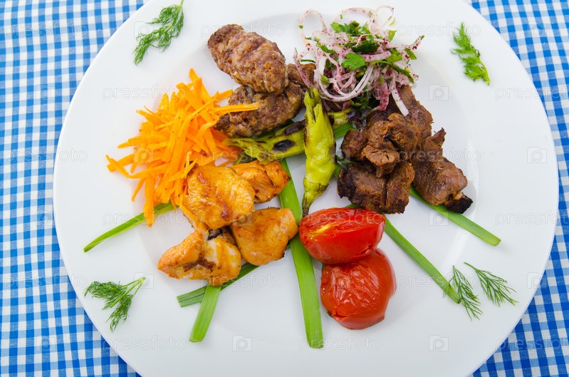 Шашлык с овощами на тарелке