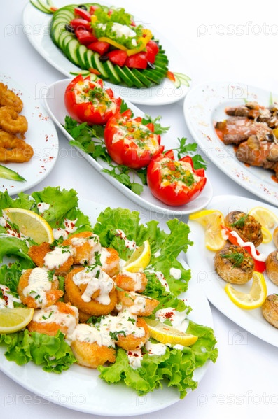 Стол с разнообразной едой