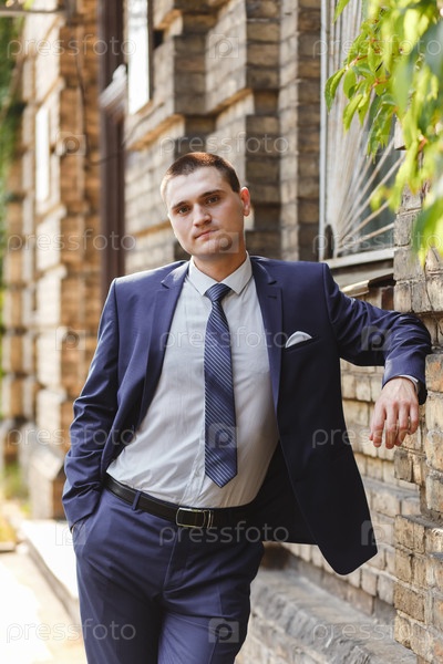 Красивый молодой жених на их день свадьбы