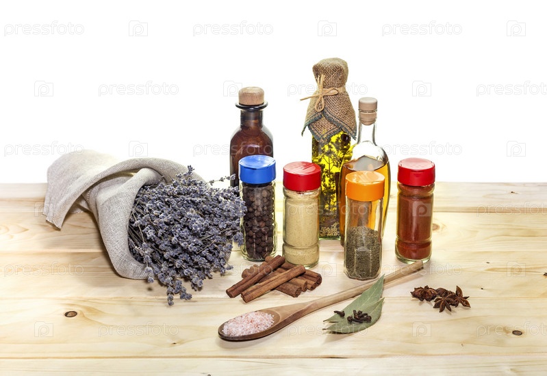 Приправы на деревянном столе