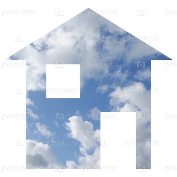 Голубое небо дом 2d модель изолированной иллюстрации над белым