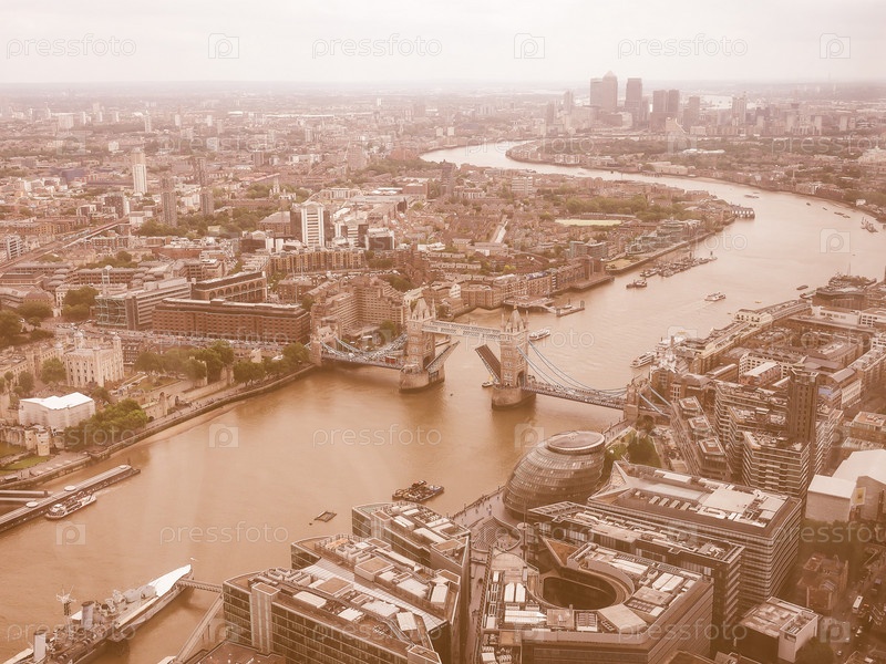 Аэрофотоснимок реке Темзе в Лондоне, Великобритания