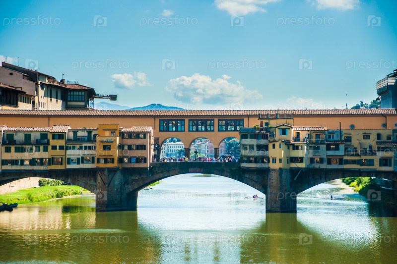 Веккьо поне над рекой Арно во Флоренции, Италия