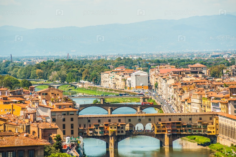 Веккьо поне над рекой Арно во Флоренции, Италия