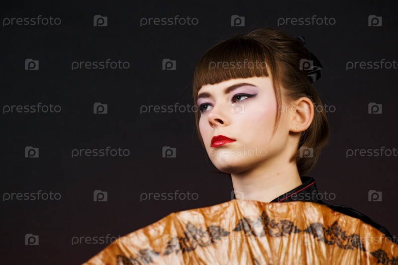Портрет молодой женщины с восточным макияжем на темном фоне