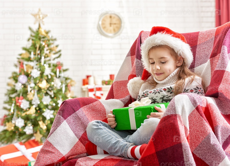 Девочка держит Рождественский подарок