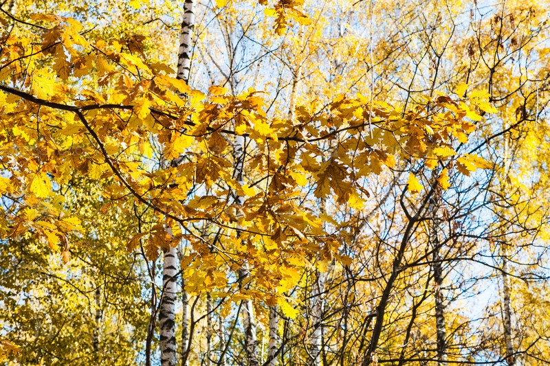 Желтая листва в лесу осенью
