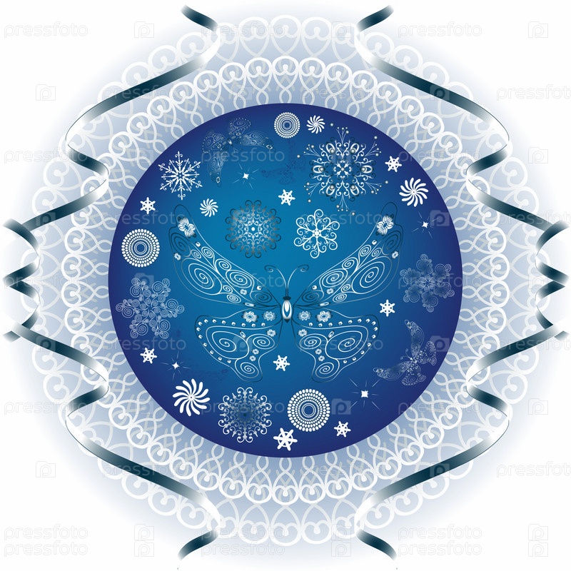 Новогоднее украшение с бабочками и снежинками