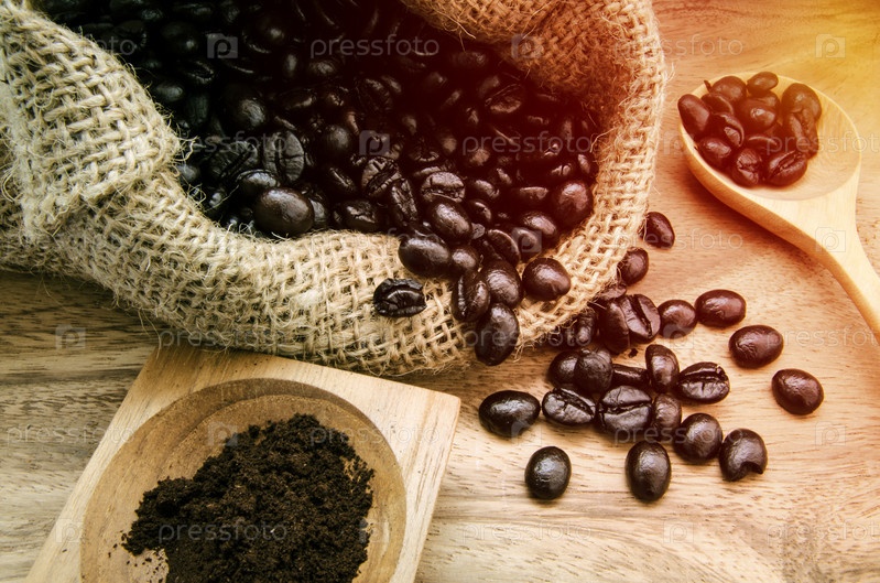 Кофейные зерна в мешке