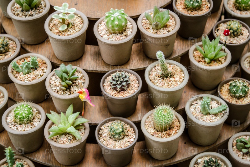 Кактусы в горшках