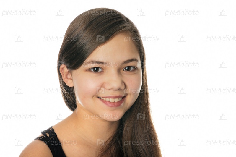 Юная брюнетка на белом фоне