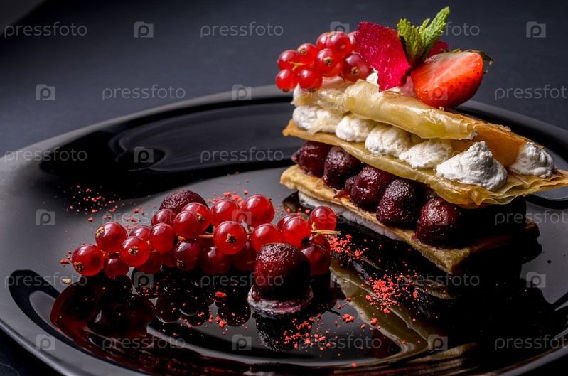 Десерт с ягодами и сливками