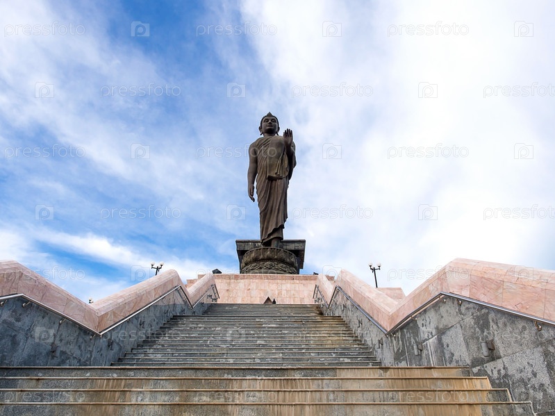 Большая статуя Будды серого в общественном месте с пасмурное небо