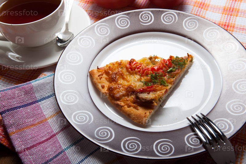 Завтрак пиццы и чай