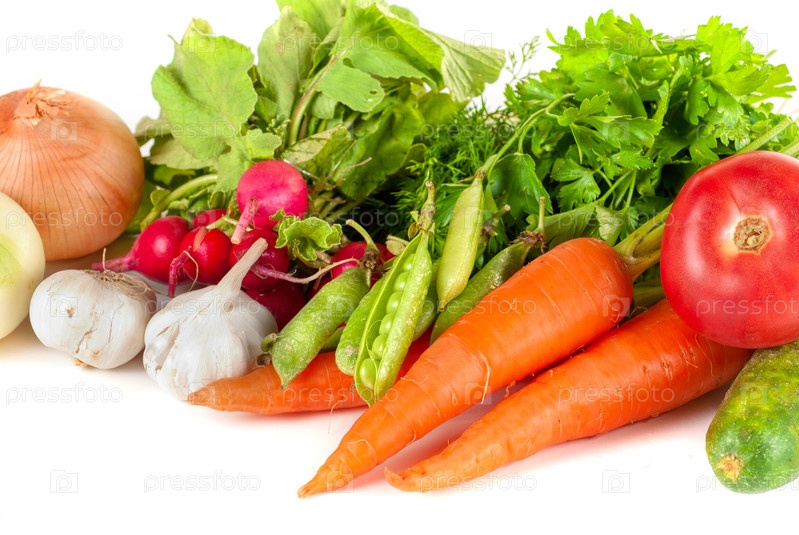 Много спелых овощей на белом фоне