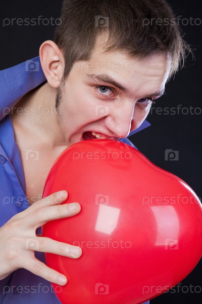 Портрет молодого симпатичного мужчины с воздушным шаром на черном фоне