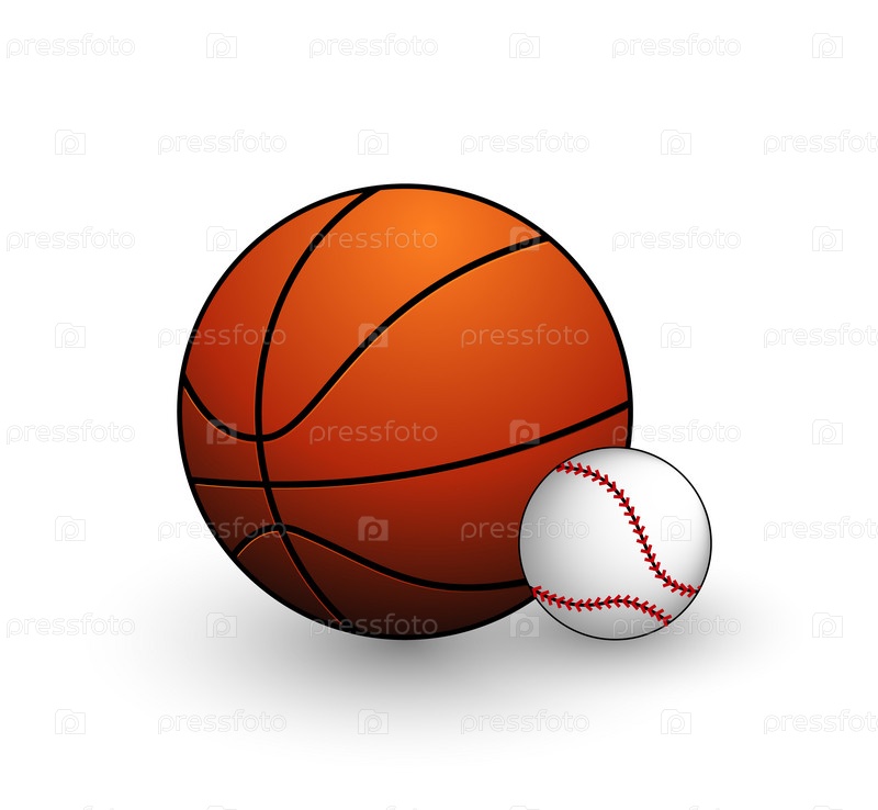 Бейсбольный и баскетбольный мячи на белом фоне