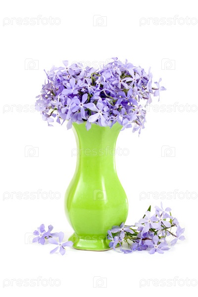 Фиолетовые цветы в вазе на белом фоне