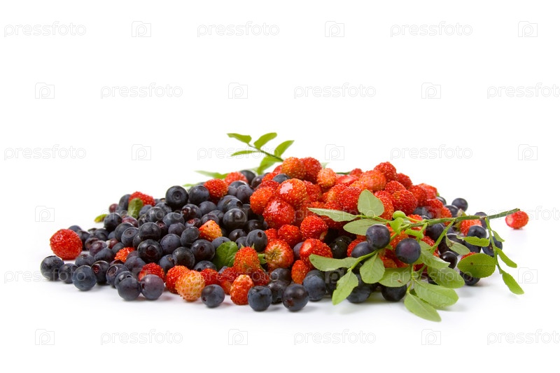 Земляника и голубика на белом фоне