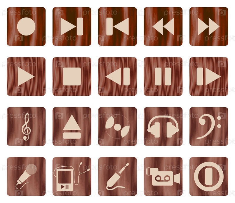 Коллекция коричневых значков музыкальной темы, изолированная на белом фоне