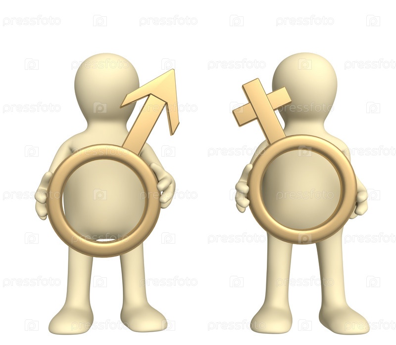 Два человечка, держащие в руках символы мужского и женского начала