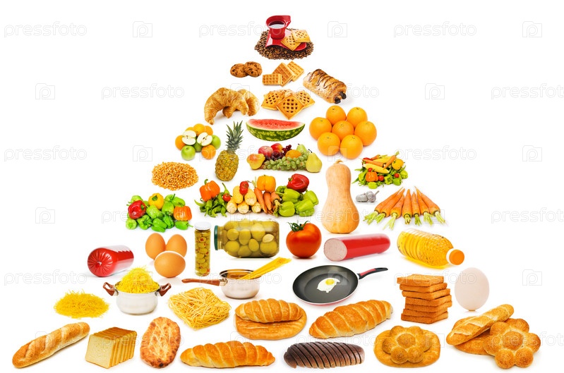 Пищевая пирамида на белом фоне