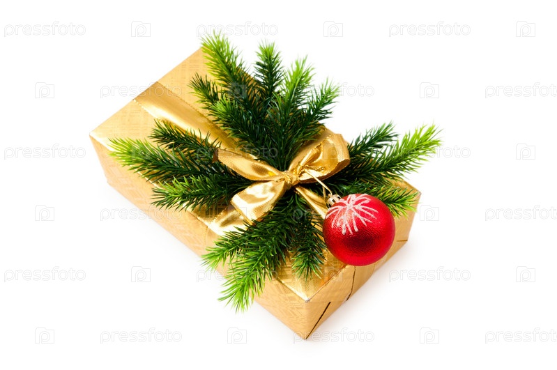 Новогодний подарок на белом фоне