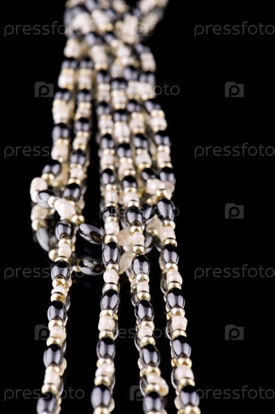 Объект на черном - бусы из морской раковины