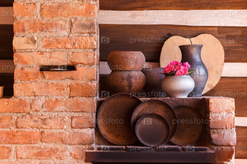 Антикварные горшки на печи
