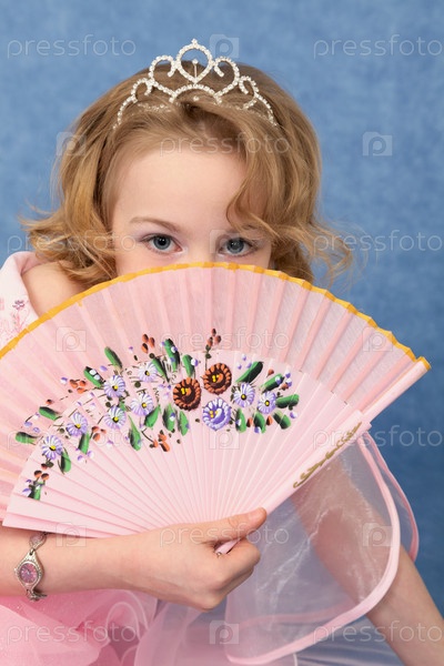 Девушка стеснительно прикрыла лицо розовым гламурным вентилятором