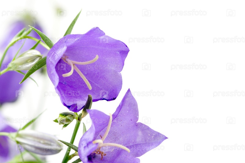 Сиреневые колокольчики на белом фоне