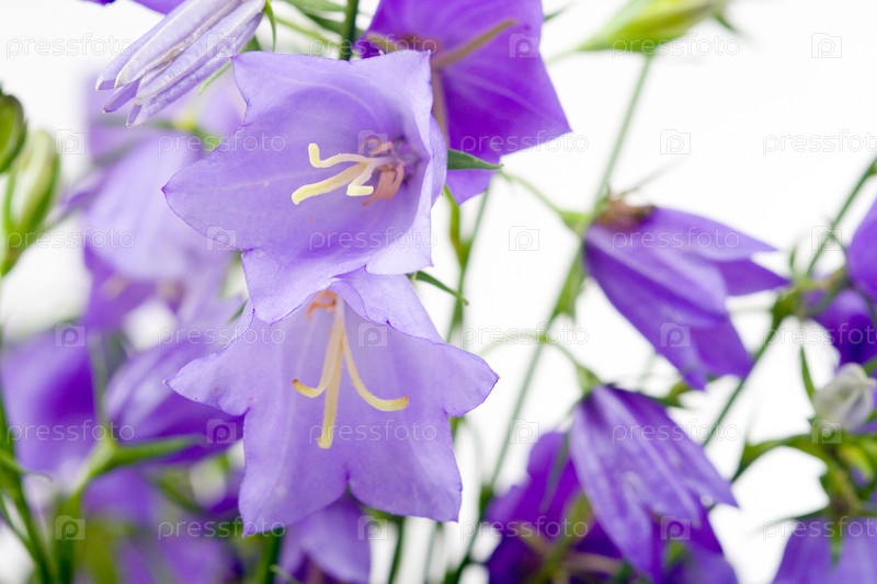 Сиреневые колокольчики на белом фоне