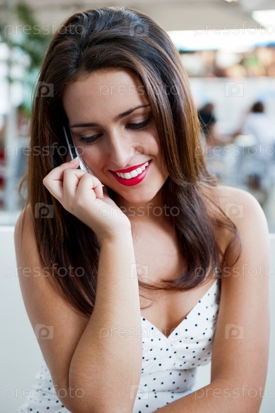 Брюнетка в белом говорит по телефону