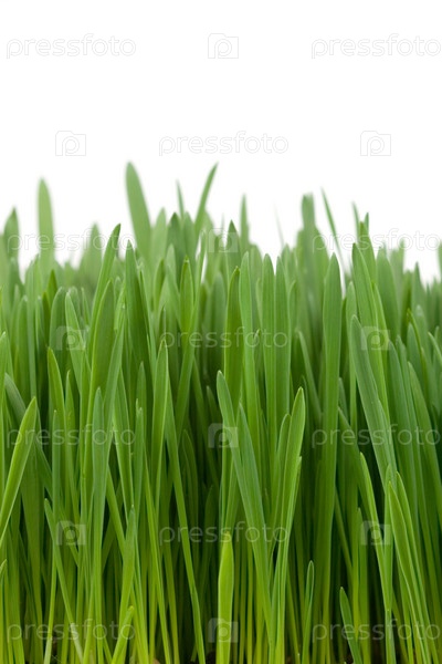 Зеленая трава на белом фоне