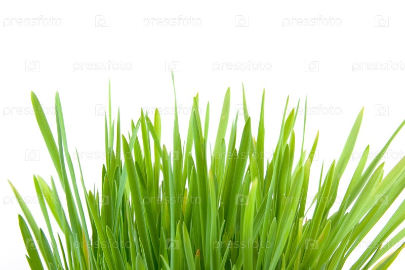 Зеленая трава на белом фоне