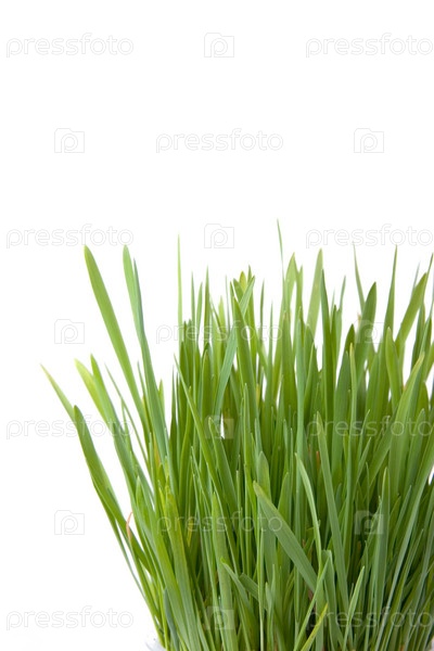Зеленая трава на белом фоне
