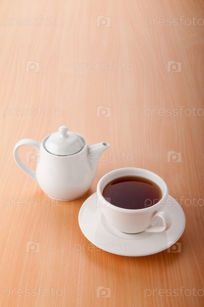 Чайник и чашка с чаем на столе