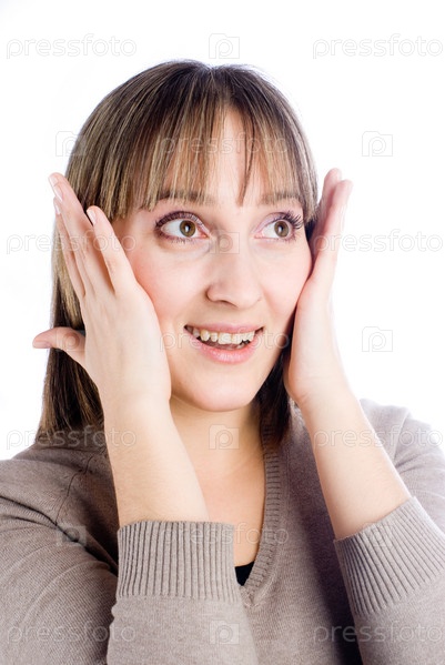 Удивленная женщина на белом