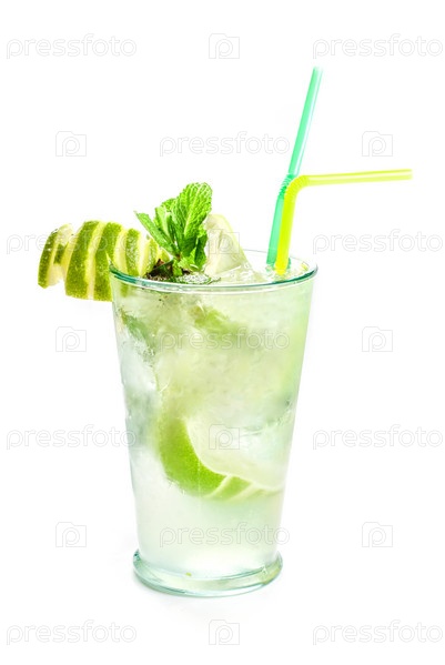 Коктейль мохито в стакане на белом фоне
