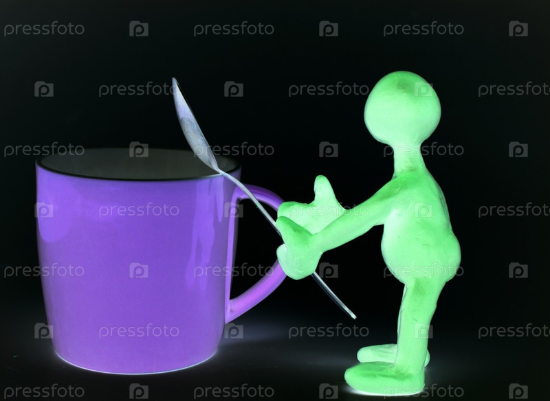 Человечек из пластилина и кружка