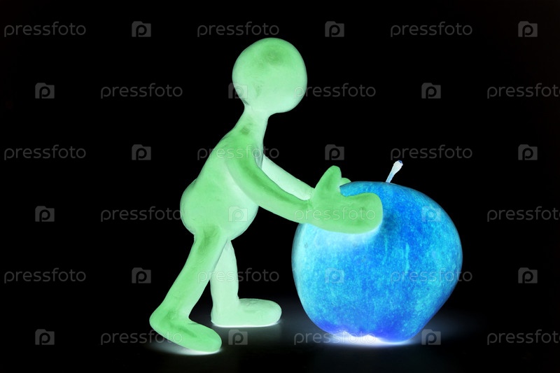Человечек из пластилина с яблоком