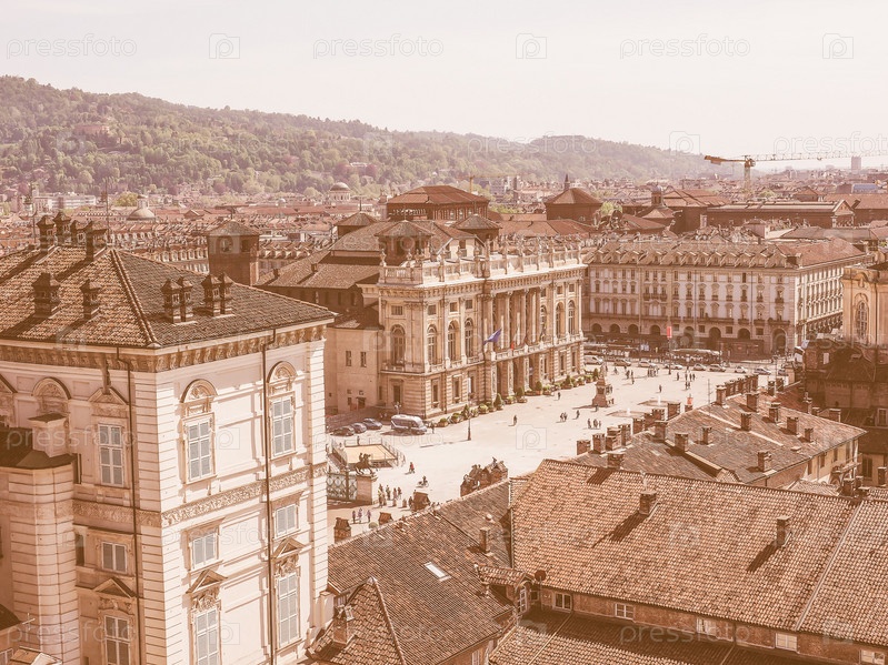 Аэрофотоснимок центральной площади Пьяцца Кастелло, Турин