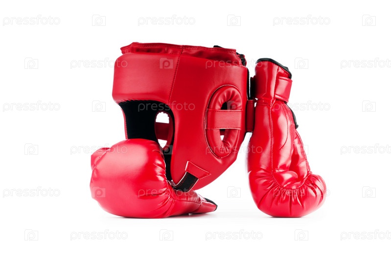 Перчатки и шлем на белом фоне