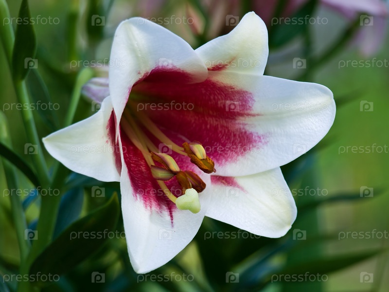 Садовая бело-красная лилия на стебле