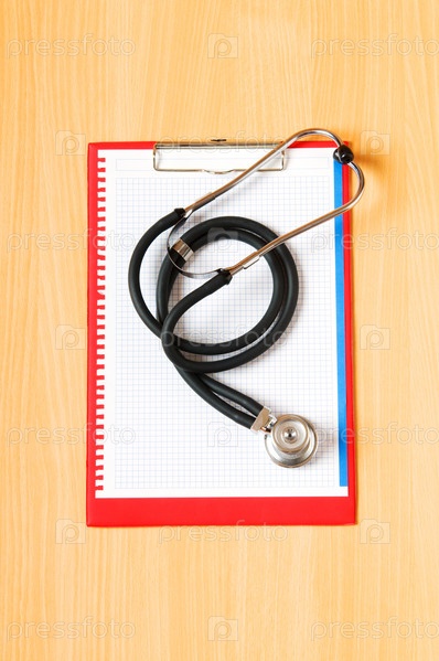 Планшет с пустым листом и стетоскоп