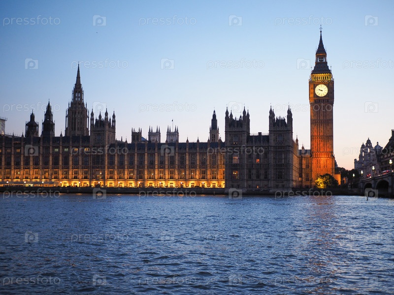 Вестминстерский дворец ночью в Лондоне, Великобритания