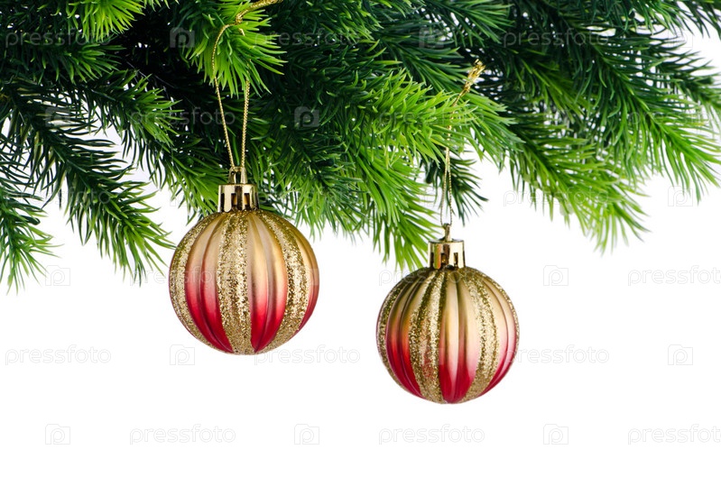 Новогодние игрушки на елочной ветке
