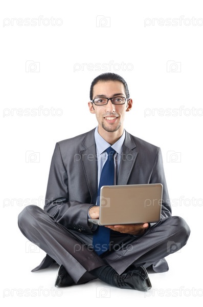 Бизнесмен работает за ноутбуком